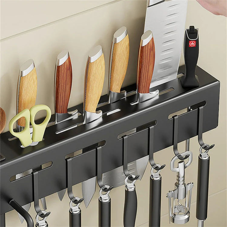 Étagère murale en aluminium avec crochets multifonctions
